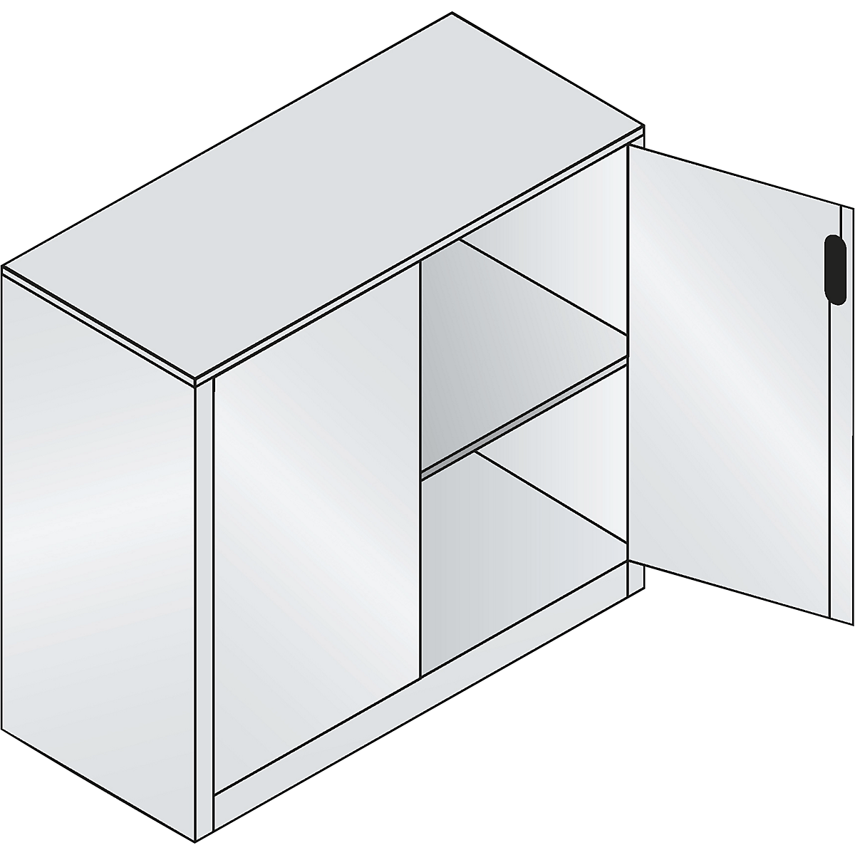Comodă din oțel, pentru acte, ACURADO, cu uși ranforsate pentru stabilitate ridicată, prinse în partea superioară și inferioară cu bolțuri pivotante, cu unghi de deschidere cca. 110°, cu închidere pe centru, cu încuietoare comună.